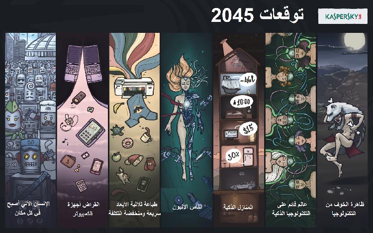 وأشار التقرير الصادر من شركة "كاسبرسكي لاب"، عن توقعاتها لتطور قطاع تقنية المعلومات بحلول العام 2045، إلى أن مهمة إنجاز معظم الأعمال المعقدة والروتينية قد أصبحت فعلياً تسند إلى الإنسان الآلي، منبهاً إلى أن التوقعات السائدة منذ وقت طويل تفترض أن يشمل التعداد السكاني في العالم مستقبلاً المليارات من الناس، ومثلهم المليارات من ما يعرف بالإنسان الآلي.