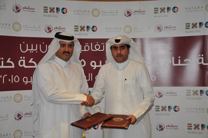 أعلنت لجنة جناح قطر- أكسبو 2015 عن توقيع اتفاقية تعاون مع كتارا للضيافة، الشركة التي تملك وتدير وتطًّور مجموعة من الفنادق والمنتجعات الفاخرة عالمياً والتي تتخذ من قطر مقراً لها.