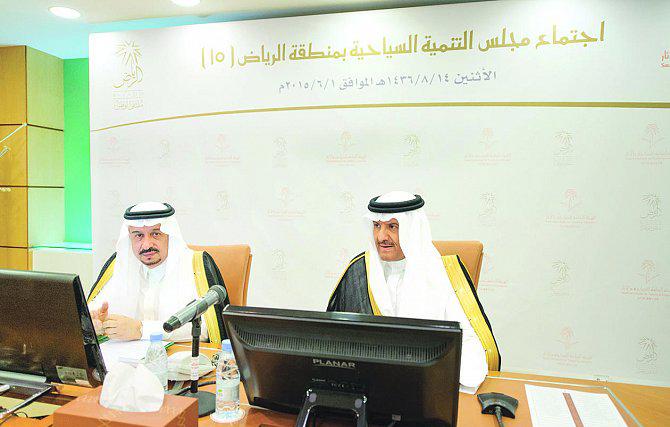 رأس صاحب السمو الملكي الأمير فيصل بن بندر بن عبدالعزيز أمير منطقة الرياض رئيس مجلس التنمية السياحية بالمنطقة، بحضور صاحب السمو الملكي الأمير سلطان بن سلمان بن عبدالعزيز رئيس الهيئة العامة للسياحة والآثار، الاجتماع الخامس عشر للمجلس الذي عقد في مقر الهيئة العامة للسياحة والآثار بالرياض مساء امس الاثنين.