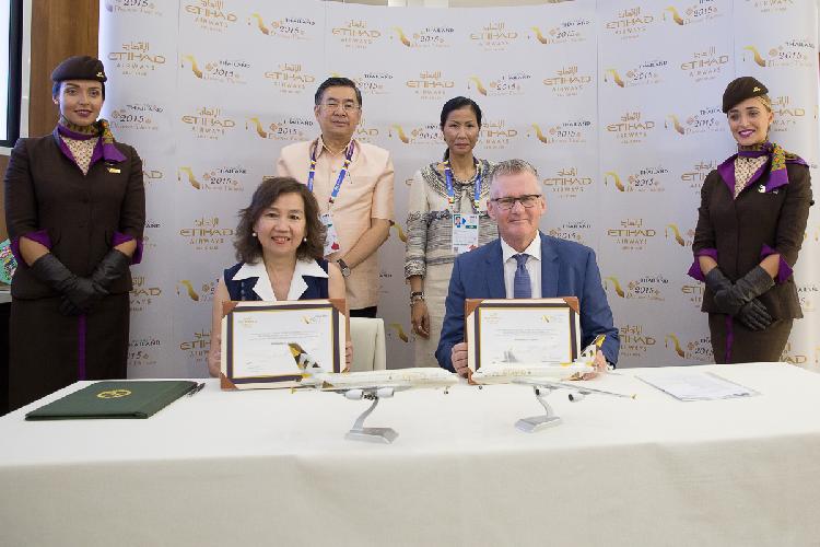 ووقع هذه الاتفاقية  كل من السيد شين أوهير ،نائب الرئيس الأول لشؤون التسويق في الاتحاد للطيران و السيدة جوثابورن ريرنغروناسا، نائب محافظ هيئة تايلاتد للسياحة لشؤون التسويق الدولي في أوروبا أفريقيا،الشرق الأوسط والأميركيتن،وعقدذلك أثناء حفل تذكاري في جناح الاتحاد للطيران بمعرض أكسبو ميلان 2015،وإنضم إليهم سعادة كوبكارن واتانافرانجكول وزيرة السياحة والرياضة التايلاندية ولفيف من كبار المسؤولين من كلا الطرفين .