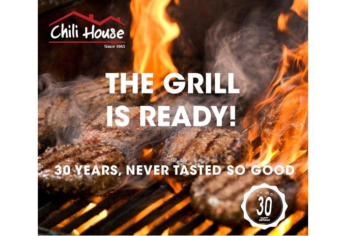 تحتفل سلسلة مطاعم " تشيلي هاوس" Chili House بالذكرى 30 على تأسيس أول فروع سلسلة مطاعم "تشيلي هاوس" التي تجمع بين النكهة الغنية والمذاق الرائع في أكتوبر الجاري.