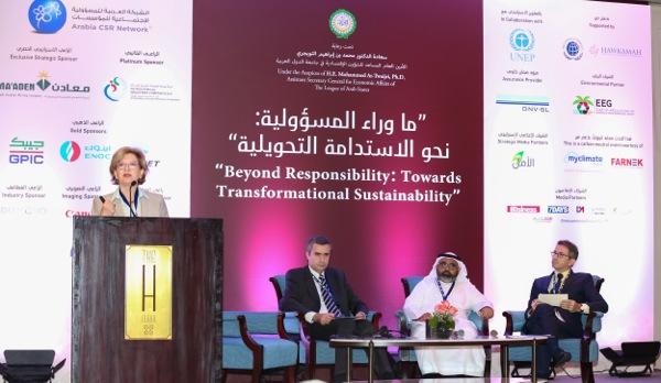 وأوضحت أن المسؤولية الاجتماعية والاستدامة تعتبر وسائل للمساهمة في التنمية المستدامة للاقتصادات والمجتمعات التي تعمل فيها، مؤكدة أن نماذج الأعمال التحويلية تخلق فرصا للنمو الاقتصادي الشامل والعادل وخلق قيمة مجتمعية، وأن نماذج الاستدامة تتمثل في جلب ثقافة تتجاوز المسؤولية الاجتماعية وتحفيز المنظمات للنظر إلى أبعد من نماذج الربح التقليدية، منوهة إلى أهمية هذا النهج الجديد في مرحلة ما بعد 2015 لعصر التنمية المستدامة.