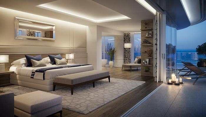 يتنوع عدد الغرف في هذه الشقق الفخمة بين غرفتين وثلاث وأربع وخمس غرف نوم تتوزع بدورها على مساحات تبدأ من 48,00 وحتى 15,000 قدماً مربعاً لتمنح المقيمين فيها مساحات إقامة واسعة مع إطلالة بانورامية تأسر الأنظار تمتد عبر واجهة زجاجية كاملة وشرفاتٍ وحدائقٍ واسعة تضم بعضها أحواض سباحة خاصة. ويتجسد معنى الرفاهية الفائقة في خمس وحدات مميزة بالطابقين العلويين حيث تتميز كل منها بمدخلٍ ومصعدٍ خاص لتوفير الخصوصية الكاملة. يسعى المشروع ليوفر الحرية والتفرد ومن أجل ذلك تم توفير مجموعة من أشهر خبراء التصميم الداخلي ليتمكن المالكون من تصميم شُقَقِهم بالطريقة التي تناسب أذواقهم.
