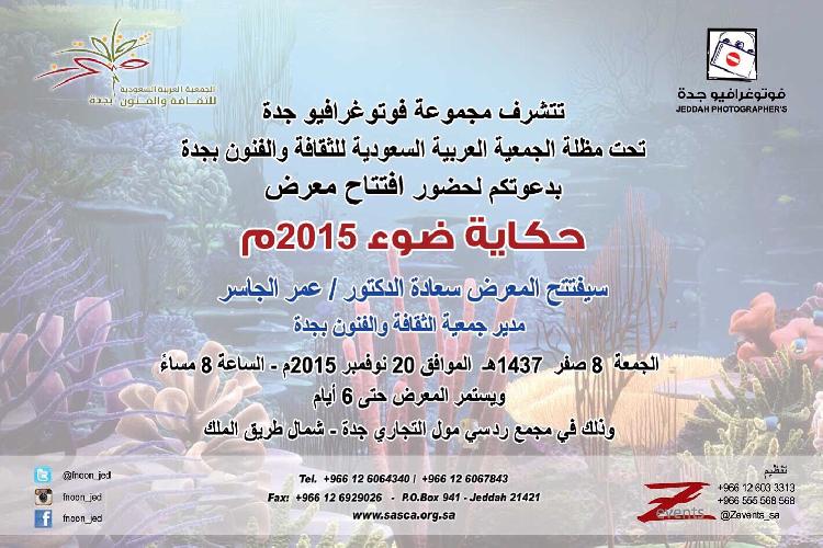 منال الحربي- يفتتح مدير جمعية الثقافة والفنون بجدة سعادة الدكتور عمر الجاسر و بمشاركة 35 فنان وفنانة وفي تظاهرة فنية فريدة ينطلق معرض ( حكاية ضوء ) الجمعة المقبل 20 نوفمبر أول معارض لجنة التصوير ( بيت الفوتوغرافيين ) بجمعية الثقافة والفنون بجدة بمجمع الردسي مول , يضم المعرض 35 عملا بموضوعات متعددة سواء من صور طبيعية وحياتية , ويتميز بتبني ثقافة جديدة للمصورين المشاركين من خلال التأكيد على المسمى الفني لكلا منهم فيما كان سابقا منهجا غير مرحب به لدى غالبية المصورين ..