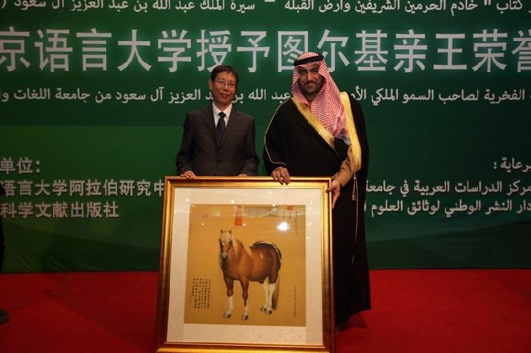 قام رئيس جامعة اللغات والثقافة في بكين بالصين "تسوي شي ليانغ" بمنح صاحب السمو الملكي الأمير تركي بن عبدالله بن عبدالعزيز آل سعود الرئيس التنفيذي لمؤسسة الملك عبدالله بن عبدالعزيز العالمية للأعمال الإنسانية، شهادة الأستاذية الفخرية والرئاسة الفخرية لمركز الدراسات العربية كما أهدى لسموه نيابة عن الجامعة لوحات فنية تاريخية وإبريقا خزفيا فنيا.