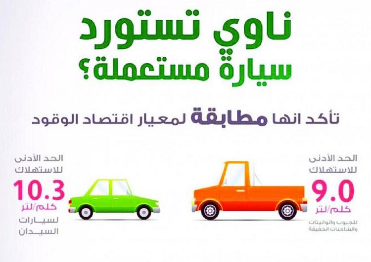 من جهة أخرى دعت حملة «السيارات المستعملة المستوردة»، إلى مراعاة الراغبين في شراء واستيراد السيارات المستعملة لمعيار اقتصاد الوقود في هذه السيارات .