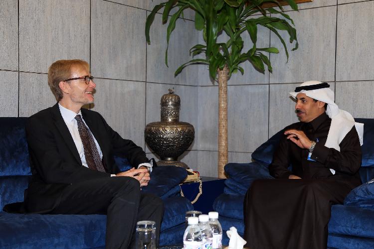 استقبل أمين عام غرفة الرياض الدكتور محمد الكثيري بمقر الغرفة امس الثلاثاء السيد أوله فريز ماسن سفير مملكة الدنمارك لدى المملكة ، وتم خلال اللقاء بحث العلاقات التجارية بين قطاعي الاعمال في البلدين والاستفادة من الفرص الاستثمارية في اقتصاد البلدين، كما استعرضا أوجه التعاون بين رجال الأعمال وإقامة مشاريع استثمارية مشتركة، حيث أكدا على أهمية تبادل الزيارات والخبرات بين قطاعي الاعمال في الدولتين وتوفير كافة الوسائل التي تساعد على اقامة مشاريع مشتركة في مختلف المجالات الاقتصادية.