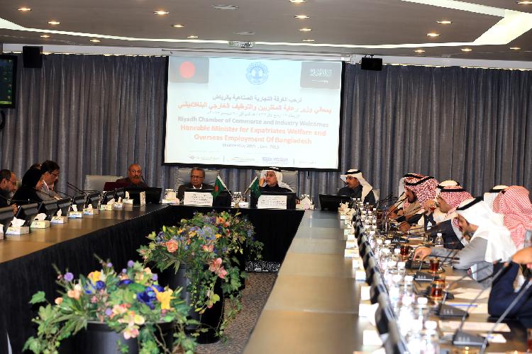 بحث السيد نور الاسلام وزير رعاية المغتربين والتوظيف الخارجي في بنغلاديش والوفد المرافق مع المستثمرين في قطاع الاستقدام بغرفة الرياض صباح اليوم الاربعاء وبحضور الدكتور عبدالرحمن الزامل رئيس مجلس ادارة الغرفة وسفير بنغلاديش لدي الرياض الصعوبات التي تواجه عملية استقدام العمالة من بنغلاديش والمقترحات والحلول التي تساعد على انسياب عملية الاستقدام بصورة طبيعية، وقد ابدي معالي الوزير ترحيبه بمقترح انشاء مراكز تدريب عبر شراكات استثمارية بين رجال الاعمال في البلدين لتدريب العمالة المنزلية قبل استقدامها للعمل في المملكة، كما تناول اللقاء عدد من المعوقات التي تواجه الاتفاقيات المبرمة بين المكاتب السعودية والبنغلاديشية.