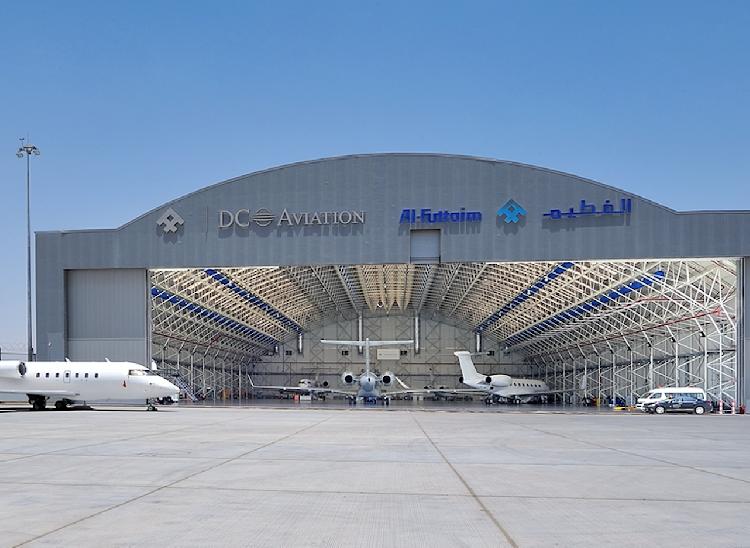 وتبلغ مساحة حظيرة طائرات شركة الفطيم دي سي للطيران 5,700 متر مربع وتتسع بسهولة للعديد من طائرات نوع ايه سي جيه (ACJ) أو بي بي جيه BBJ)) ، بالإضافة لطائرات من فئة طائرات رجال الأعمال طويلة المدى مثل فالكون (Falcon 7X) 7X، جلوبال إكسبريس (Global Express)، أو جلف ستريم G650 Gulfstream G650)). وتقع حظيرة الطائرات في موقع استثنائي بالقرب من مدرج المطار، وتوفر مع المساحة الخارجية المخصصة لوقوف الطائرات البالغة مساحتها 7700 متر مربع، خدمات الدعم والصيانة وتشغيل طائرات رجال الأعمال والخاصة من جميع الأحجام على مدار اليوم وطوال أيام الأسبوع.