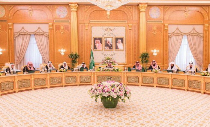 رأس خادم الحرمين الشريفين الملك سلمان بن عبدالعزيز آل سعود ـ حفظه الله ـ الجلسة التي عقدها مجلس الوزراء بعد ظهر اليوم الاثنين في قصر اليمامة بمدينة الرياض.