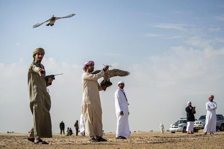 يتم اختيار أفضل الصقور أداءً من حيث القدرة على المناورة وسرعة الانطلاق والمسافة الفاصلة بين الصقر وبين الحمام الزاجل.