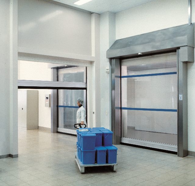 تجدر الإشارة إلى أن تنقية الهواء في الغرف النظيفة يمكن أن تؤدي إلى فارق ضغط يصل إلى 50 باسكال. ولذلك، تم دمج الستارة الشفّافة تمامًا التي يحتوي عليها هذا الباب المثالي لتوفير غرف نظيفة بإحكام في الموجّهات الجانبيّة الخاصة. وهذا من شأنه أن يقلل من فقدان (تسرب) الهواء ويتيح تصميمًا أمثل لأنظمة التهوية. وبفضل ما يتسم به هذا الباب من وحدة تحكم في محول التردد (FU)، تبلغ سرعة الفتح والإغلاق القصوى 1.5 م/ث و0.5 م/ث، على التوالي.