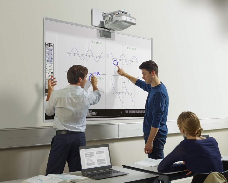 تمكّن أجهزة الإسقاط (EB-595Wi) المعلمين والطلبة على حد سواء من الاستفادة من ميزة اللمس سداسيّ النقاط أو من الأقلام التفاعلية المتوفرة مع الأجهزة، والتي تسمح لهم بالتعليق مباشرةً على الصورة المُسقطة، ما يتيح أكثر من أي وقتٍ مضى كتابة الملاحظات أو رسم المخططات البيانية أو إضافة الأشكال التوضيحية على التسجيلات المرئية. ومن السهل استخدام أدوات التحّكم على الشاشة للتنقّل بين الشرائح أو اختيار عناصر الإدخال أو حتى حفظ الأشكال التوضيحية، وكلّ ذلك من خلال لمسة إصبعٍ فحسب. ويتيح التصميم القائم على تقنية الإسقاط فائق القِصر للمستخدمين التفاعل مع عروضهم التقديمية بصورةٍ مباشرةٍ مع التقليل من الظلّال والوهج إلى الحدّ الأدنى.