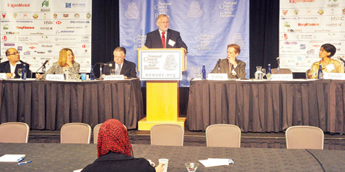 وتناول المتحدثون في جلسات العمل عدداً من القضايا والموضوعات من ضمها بيئة الأعمال في دول مجلس التعاون الخليجي، والانتخابات الأمريكية المرتقبة، والعلاقات العربية الأمريكية.
