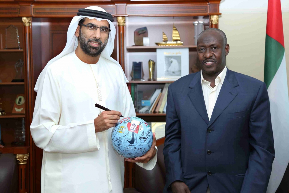 اشاد الشيخ محمد بن كايد القاسمي رئيس دائرة التنمية والاقتصاد بأمارة راس الخيمة رئيس نادي راس الخيمة الاسبق بمبادرة اطلاق كرة (كلنا بنحب خليفة )والتي تتزامن مع احتفالات الدولة باليوم الوطني ال45 في ديسمبر المقبل ، جاء ذلك خلال استقباله للمقيم السوداني خالد عمر عبد الله صاحب المبادرة التي وصفها الشيخ القاسمي بأنها تنبع من فكرة رائدة وتدل على تلاحم الشعوب العربية وتضامنها وحبها للرياضة وانصهارها مع بعضها البعض خصوصا في دولة الامارات منوها الى ان المبادرة ان دلت على شئ انما تدل على حب المقيمين والاشقاء لحكام وقيادات وشيوخ دولة الامارات في مقدمتهم صاحب السمو الشيخ خليفة بن زايد ال نهيان رئيس الدولة (حفظه الله) الذي نتمنى له موفور الصحة والعافية .