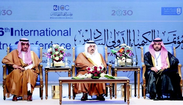 وقال سموه في تصريح صحفي عقب رعايته أمس مؤتمر الكيمياء الدولي السادس، بجامعة الملك سعود بالرياض، وينظمه قسم الكيمياء بالتعاون مع الجمعية الكيميائية السعودية «أبناء هذا الوطن حققوا الكثير من المكتسبات وشرفوا بلادهم، في الصناعات الكيمائية، ولا أدل من ذلك إلا تكريم ورعاية خادم الحرمين الشريفين لهم، ولمبادرتهم ولكل من يعمل ويخطط للمستقبل».