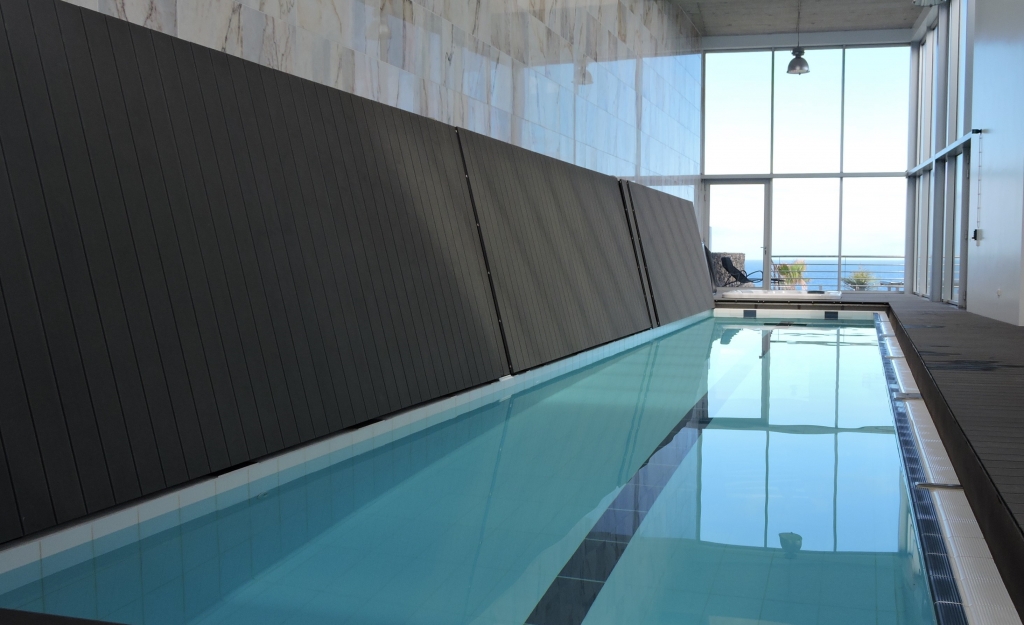 وتمكنت الشركة من اختراع سقف متحرك صلب يغطي برك السباحة فور الانتهاء من استخدامها وتحويلها إلى موقف للسيارات، أو الاستفادة منها كمساحة أخرى للعب والمرح، أو حتى إضافتها للمساحة الخضراء التي تزين حديقة المنزل أو ساحات المرافق.