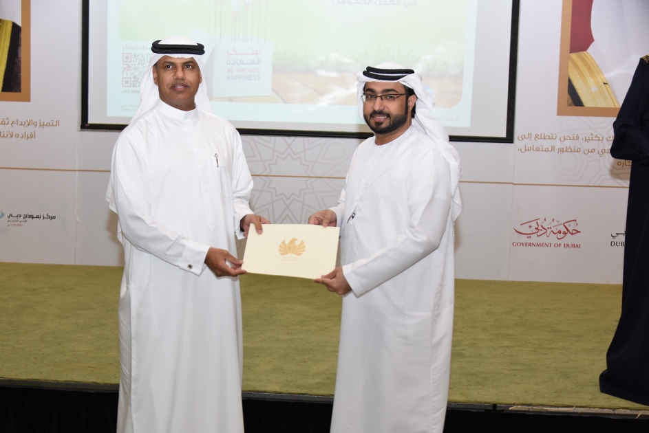 وقام مدير جمارك دبي بتكريم الموظفين الذين قدموا أفكار و ابتكارات التطوير وسلمهم شهادات التقدير خلال حفل تكريم أقيم ضمن فعاليات مهرجان الابتكار الذي نظمته الدائرة في مهرجان الامارات للابتكار 2016.