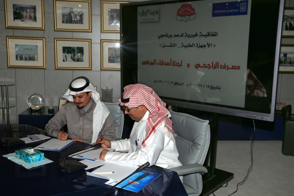 أبرمت لجنة أصدقاء المرضى بغرفة الرياض اتفاقية مع مصرف الراجحي  لتنفيذ برنامجي "معافى للأجهزة الطبية ، وبرنامج نقل " للمرضى وذلك في إطار دعم مصرف الراجحي الدائم للجنة أصدقاء المرضى والمساهمة في مساعدة المرضى، وتتضمن الاتفاقية دعم مصرف الراجحي للجنة بمبلغ 1.3 مليون ريال لبرنامج "معافى" وهو برنامج لتأمين أجهزة ومعدات طبية للمرضى الغير قادرين على تأمينها و مبلغ 600.000 ريال لبرنامج " نقل "  وهو توصيل المرضى من وإلى مراكز الغسيل الكلوي وإيصال الدواء والأجهزة الطبية لمكان إقامة المرضى اذا كان لا يستطيع الحضور لاستلامها.