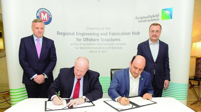 وقعت شركة أرامكو السعودية مذكرة تفاهم مع شركة ماكديرموت إنترناشيونال لإقامة مشروع في مجمع الملك سلمان العالمي للصناعات والخدمات البحرية في مدينة رأس الخير، لتقديم خدمات الهندسة والشراء والإنشاء والتركيب المتكاملة للمنصات البحرية بما يخدم مشاريع النفط والغاز التطويرية في الأسواق الأخذة في النمو التي تعمل فيها شركة ماكديرموت في الشرق الأوسط والمناطق الإقليمية الأخرى.