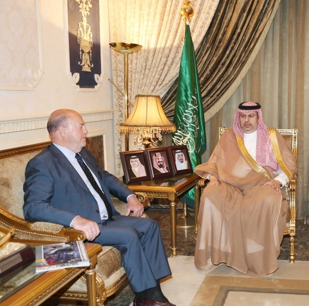 كما استقبل الأمير عبدالله بن مساعد، نائب رئيس الاتحاد الصيني لكرة القدم زيهانق جيان. وجرى خلال اللقاء الحديث عن عدد من الموضوعات والبرامج الرياضية، وسبل التعاون بين البلدين.