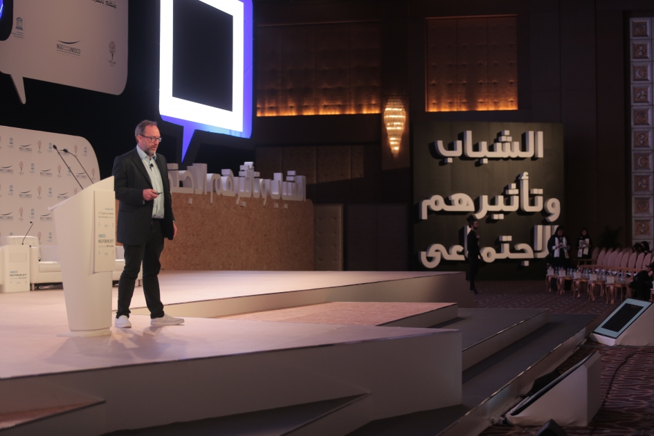دعا مؤسس موقع ويكيبيديا جيمي ويلز شباب العالم إلى أن يكونوا جريئين في أفكارهم والعمل على الاستفادة من إبداعهم وعدم الخوف من الفشل إطلاقاً، مشيراً إلى أن رؤية المملكة العربية السعودية 2030 تعتبر مبادرة عظيمة لإشراك المزيد من الشباب في بناء مستقبل البلاد، مؤكداً في ذات الوقت على الدور الاجتماعي للشباب في الأوقات المتغيرة والتقدم إلى الأمام بطريقة منتجة ومثمرة.