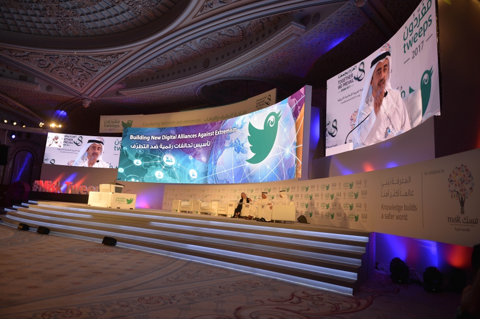 انشغل المشاركون في ملتقى مغردون الخامس الذي نظمته مؤسسة محمد بن سلمان بن عبد العزيز "مسك الخيرية" اليوم في الرياض تحت عنوان "محاربة التطرف والإرهاب"، وعلى مدار 6 جلسات في تشخيص واقع الفكر المتطرف في مواقع التواصل الاجتماعي واستغلالها في تجنيد الشباب، وسط تأكيدات وزير خارجية الإمارات عبد الله بن زايد على أن الإرهاب لا دين ولا جنسية له، بدليل أن دولا أوروبية خرجت متطرفين، مفيدا أن 60% من المنضمين لتنظيم داعش الإرهابي قدموا من أوروبا وذلك بعد أن تحولوا إلى الإسلام بوعي ضعيف.