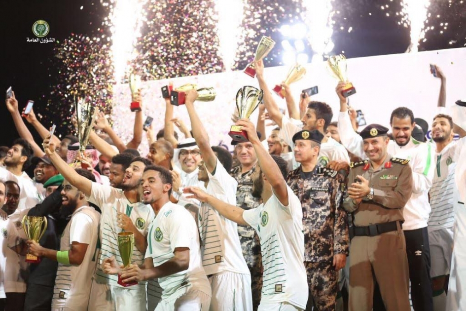 حقق منتخب الحرس الملكي لكرة القدم في المنطقة الغربية لقب بطولة ارامكو السعودية الخامسة لكرة القدم التي اختتمت أمس على ملاعب الشركة في حي الرحاب بمحافظة جدة ، وذلك بعد تغلبه على منتخب الحرس الوطني بأربعة أهداف مقابل ثلاثة وكان شوطي المباراة الأصلي قد انتهى سلبيا ، ليلجأ الفريقين الى ركلات الترجيح التي كسبها منتخب الحرس الملكي، وتسلم كأس البطولة العميد حماد بن عبدالرحمن الحماد