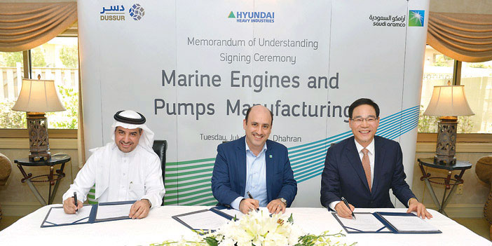 أعلنت كل من «أرامكو السعودية» والشركة العربية السعودية للاستثمارات الصناعية «دسر»، وشركة هيونداي للصناعات الثقيلة، التوقيع على مذكرة تفاهم للتعاون المشترك في مجال تصنيع المحركات والمضخات في المملكة.