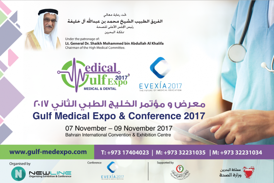 تحت رعاية معالي الفريق طبيب الشيخ محمد بن عبد الله آل خليفة رئيس المجلس الأعلى للصحة في مملكة البحرين، ستنظم شركة نيولاين لتنظيم المعارض والمؤتمرات معرض الخليج الطبي الثاني 2017، وذلك بالتعاون من شركة أجيال الاستشارية.