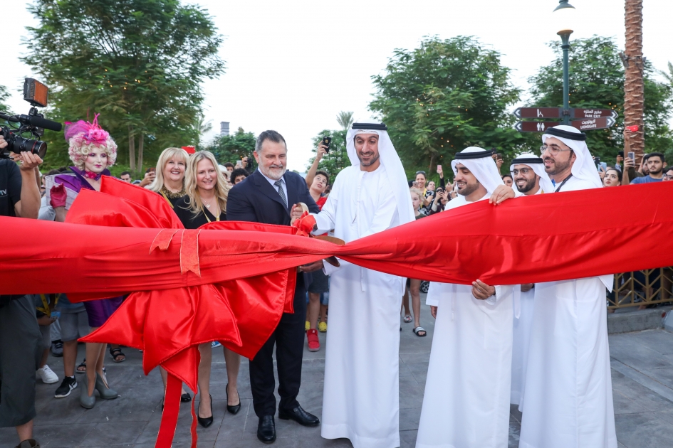 وشهد حفل الافتتاح الرسمي لمنطقة "ليونزجيت" حضور مسؤولين من استديو "ليونزجيت" وممثلي إدارة "دبي باركس آند ريزورتس" ومجموعة من الإعلاميين الدوليين والمحليين، إضافة إلى عريف الحفل "برينت بلاك" من إذاعة "فيرجين" بدبي في أمسية مميزة تخللها كشف الستار عن الوجهة الترفيهية الجديدة، وعرض "ذا هانجر جيمز" الموسيقي الحي الذي قدم لأول مرة، إضافة إلى الألعاب النارية المميزة إعلاناً عن الإفتتاح الرسمي للوجهة.