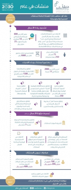 أكملت الهيئة العامة للمنشآت الصغيرة والمتوسطة يوم الخميس الماضي والموافق 13 ديسمبر 2017 عامها التشغيلي الأول، وجاء تتويج عامنا الأول بقرار المقام السامي مؤخرا بدعم قطاع المنشآت الصغيرة والمتوسطة بأكثر من 12 مليار ريال سعودي. هذا الدعم هوَ ترجمة حقيقية لإيمان القيادة بأهمية هذا القطاع كمحرك أساسي للتنمية الإقتصادية في المملكة العربية السعودية وممكّن لتحقيق رؤية 2030 وما بعد.