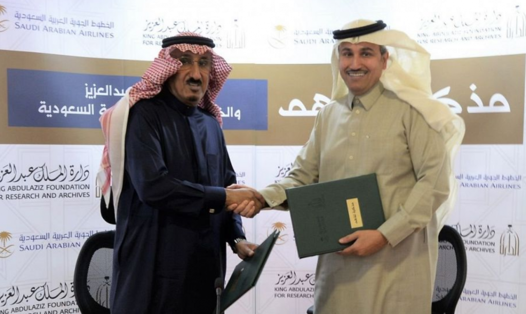 وقعت دارة الملك عبد العزيز مذكرة تعاون مع الخطوط الجوية العربية السعودية، بمقر مهرجان الملك عبد العزيز للإبل بالرياض.