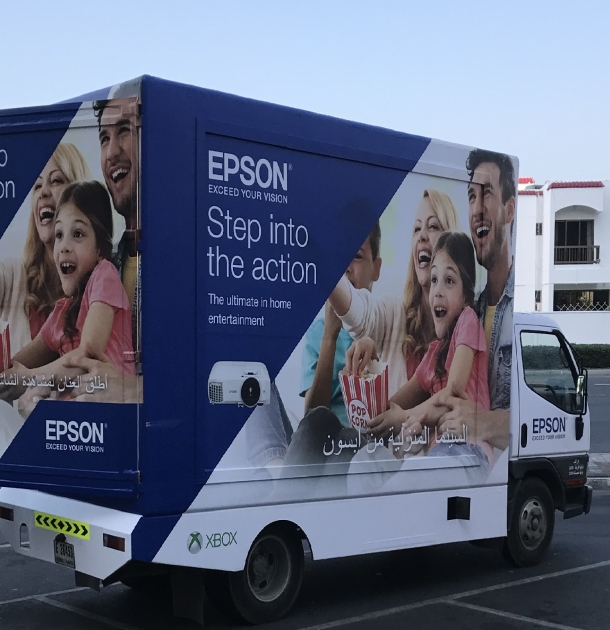على مدار أسبوعين ابتداء من 17 يناير ستكون عربات إبسون المتنقلة معكم في أماكن مختلفة من دبي لتوفر للجميع الفرصة الذهبية لمشاهدة وتجربة عروض الشاشات العريضة ذات الدقة العالية مع جهاز عرض إبسون EH-TW5600 الذي يوفر ثلاثة سيناريوهات مختلفة : الألعاب والرياضة والأفلام، وكلها ضمن بيئة بيتية