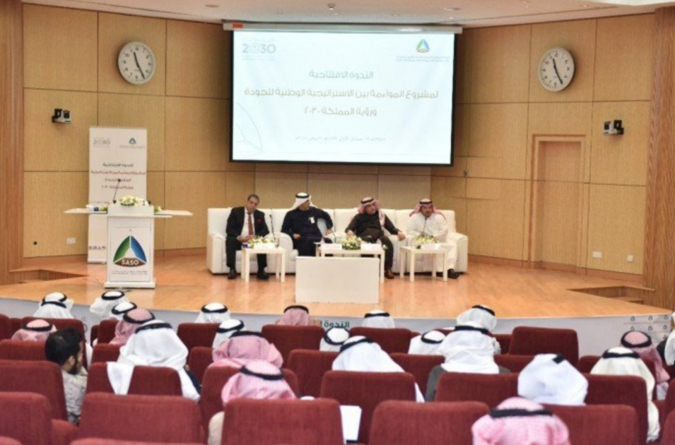 أطلقت الهيئة السعودية للمواصفات والمقاييس والجودة مشروع المواءمة بين الاستراتيجية الوطنية للجودة ورؤية المملكة 2030، بمشاركة واسعة لنخبة من الخبراء والمتخصصين في مجال الجودة من أكثر من 32 جهة حكومية وخاصة في قطاعات العمل المختلفة من أبرزها الوزارات والهيئات الحكومية وعدد من الجامعات والجمعيات المهنية والخيرية إلى جانب بعض الشركات والمصانع الخاصة، جاء ذلك خلال الندوة الافتتاحية لهذا المشروع التي تم تنظيمها في مقر الهيئة بمدينة الرياض.