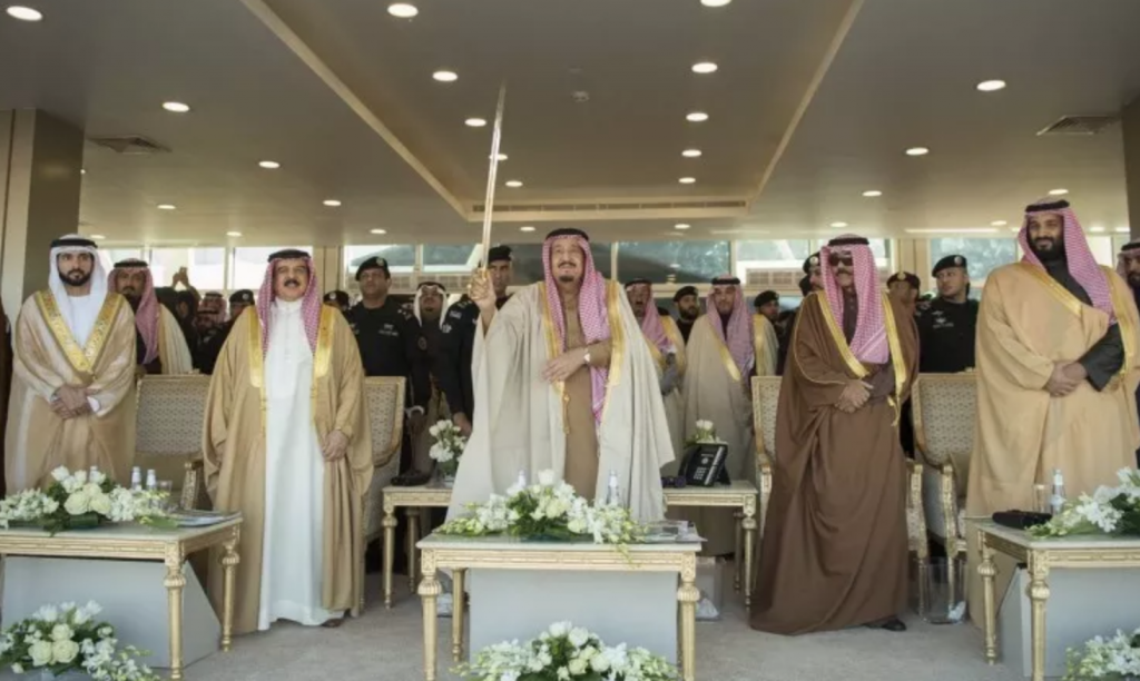 وفي ساق متصل استقبل خادم الحرمين الشريفين الملك سلمان بن عبدالعزيز آل سعود - حفظه الله - بحضور صاحب السمو الملكي الأمير محمد بن سلمان بن عبدالعزيز ولي العهد نائب رئيس مجلس الوزراء المشرف العام على نادي الإبل اليوم جلالة الملك حمد بن عيسى آل خليفة ملك مملكة البحرين، وسمو الشيخ نواف الأحمد الجابر الصباح ولي عهد دولة الكويت، والشيخ حمدان بن محمد بن راشد آل مكتوم ولي عهد دبي ومعالي الشيخ سعد بن محمد السعدي وزير الشؤون الرياضية بسلطنة عمان والشيخ سلطان بن سحيم آل ثاني والشيخ مبارك بن خليفة آل ثاني و الشيخ جاسم بن خليفة آل ثاني والشيخ خالد بن خليفة آل ثاني والشيخ فهد بن عبدالله آل ثاني والشيخ خليفة بن مبارك آل ثاني والشيخ عبدالله بن فهد آل ثاني ضيوف الحفل الختامي لمهرجان الملك عبدالعزيز للإبل بالقرية السعودية للإبل بالصياهد الجنوبية للدهناء.