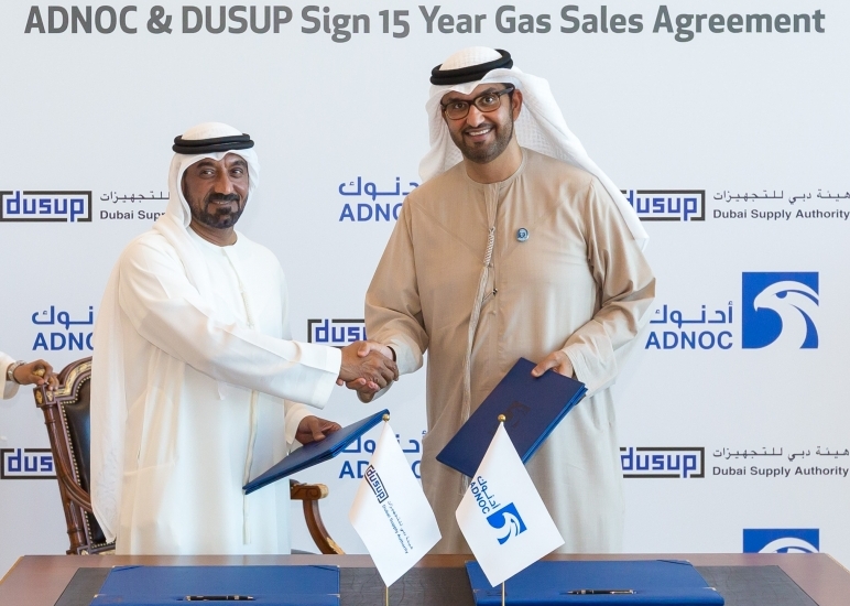 وقعت شركة بترول أبوظبي الوطنية "أدنوك" اليوم اتفاقية لبيع الغاز مع هيئة دبي للتجهيزات (دوسب)، تقوم أدنوك بموجبها بتزويد الهيئة بالغاز الطبيعي لمدة خمسة عشر عاماً للمساهمة في تلبية الطلب على إمدادات الطاقة في دبي.