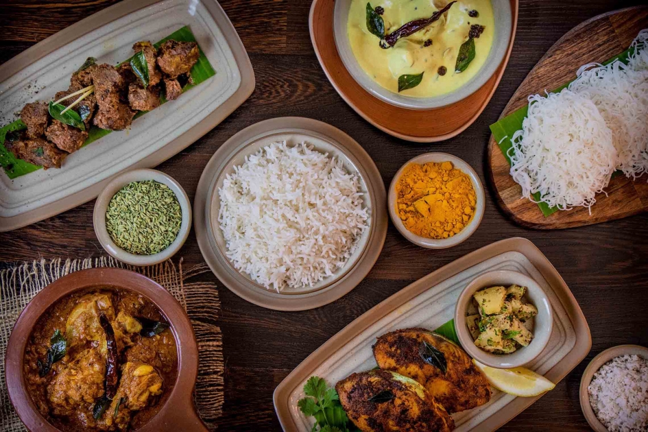 تتميز جميع الأطباق الرئيسية بنكهة فريدة ومميزة ابتداءاً من طبق كيريلا الشهير أليبي براون كاري بالمانجو لفلفل بيدجي المستخدم في دجاج كوري جي المشوي من كارناتاكا، وكودي برياني على طريقة أندرا.