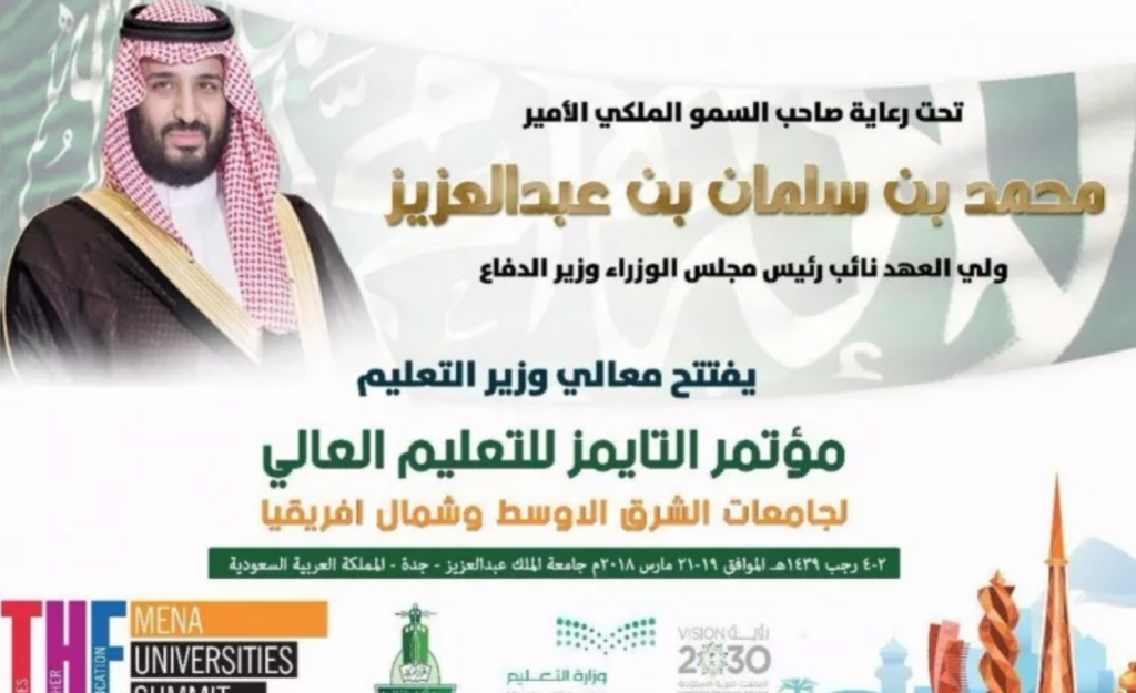 تحت رعاية صاحب السمو الملكي الأمير محمد بن سلمان بن عبد العزيز ولي العهد نائب رئيس مجلس الوزراء وزير الدفاع يفتتح نيابة عن سموه بعد غدٍ معالي وزير التعليم الدكتور أحمد بن محمد العيسى مؤتمر " تطوير اقتصاد المعرفة لمنطقة الشرق الأوسط وشمال أفريقيا - تحقيق إمكاناتنا" بالتعاون مع تايمز لتصنيف التعليم العالي خلال الفترة 2- 5 / 7 / 1439هـ الذي تستضيفه جامعة الملك عبد العزيز بمقر مركز الملك فهد للبحوث الطبية.