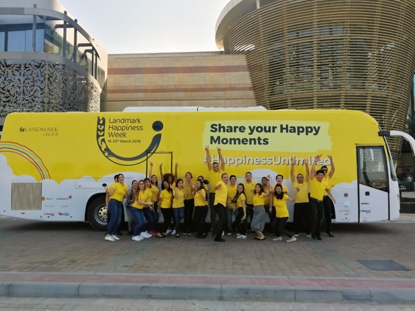 وللمرة الأولى على الإطلاق، قدمت مجموعة "لاندمارك" مبادرة "حافلة السعادة" الفريدة من نوعها التي تجولت أنحاء المدينة في إطار "أسبوع السعادة". ومثلت الحافلة رحلة احتفالية نشرت البهجة من خلال أنشطة متعددة شملت عروض ألعاب الخفة؛ وصنع الأشكال بالبالونات؛ والرسم على الوجوه؛ والألعاب والجوائز، كما تم توزيع حقائب الهدايا على زوار عدد من وجهات التسوق المختارة في المدينة. وقامت الحافلة بزيارة مدارس أصحاب الهمم في جميع أنحاء المدينة لترسم الابتسامة على وجوه الأطفال طوال أيام الأسبوع.