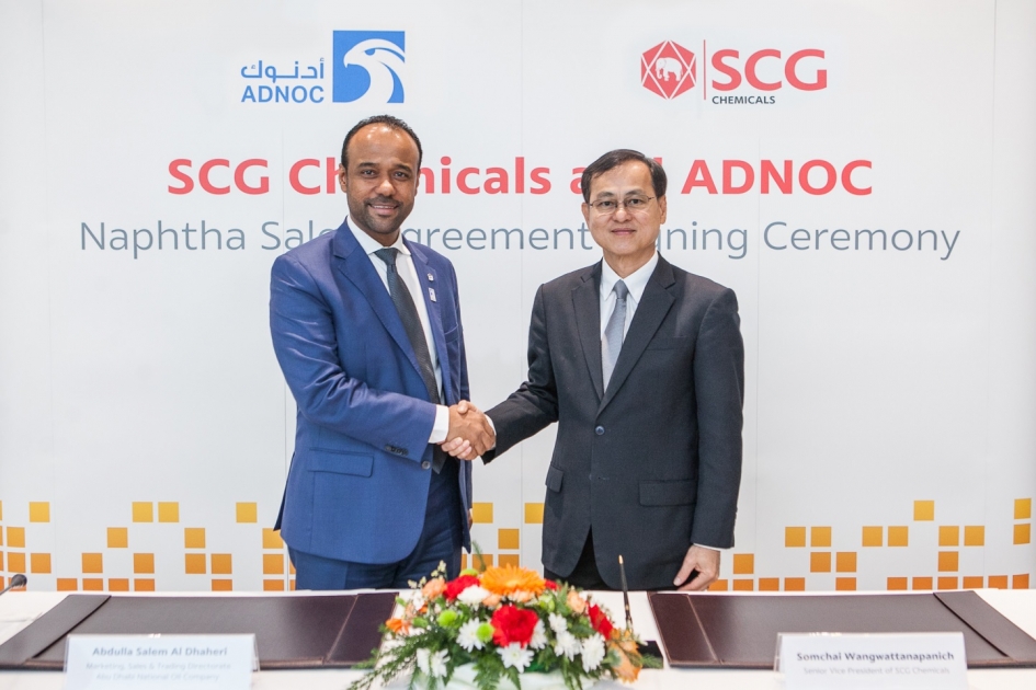 وقعت شركة بترول أبوظبي الوطنية "أدنوك" اتفاقيتين جديدتين مع شركة "ايدمتسو كوسان" ليمتد اليابانية، وشركة "إس سي جي" التايلاندية، تقوم أدنوك بموجبهما ببيع مليون ونصف طن سنوياً من مادة النافتا للشركتين على مدى السنوات الثلاث القادمة.
