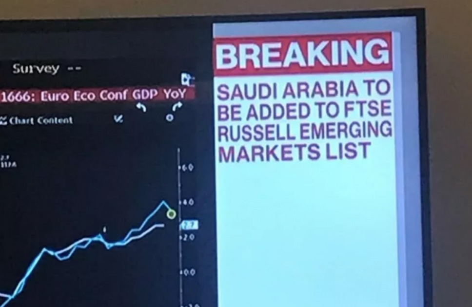 أعلنت مجموعة فوتسي راسل (FTSE Russell)، المزود العالمي للمؤشرات، انضمام السوق المالية السعودية (تداول) إلى مؤشرها العالمي للأسواق الناشئة، حيث ستتأهل السوق المالية السعودية للتصنيف ضمن الأسواق الناشئة بدلًا من كونها غير مصنفة لدى مؤشر فوتسي العالمي.
