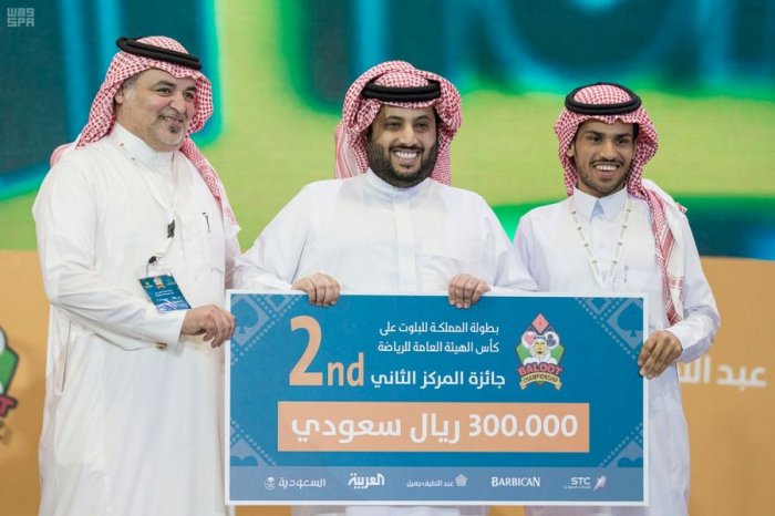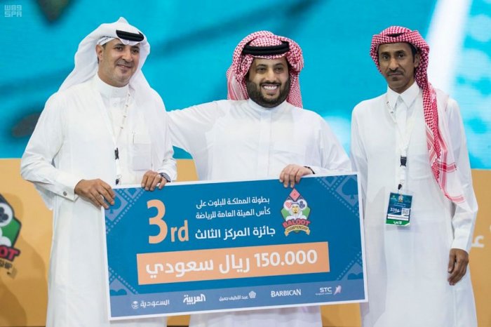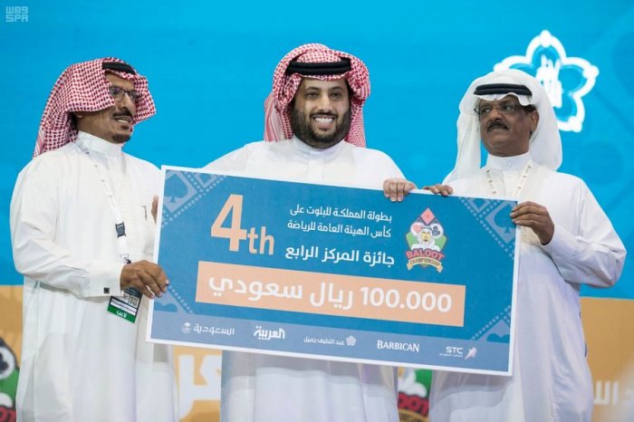 توَّج معالي رئيس مجلس إدارة الهيئة العامة للرياضة، رئيس اللجنة الأولمبية العربية السعودية، الأستاذ تركي بن عبدالمحسن آل الشيخ، فريق أبطال مجموعة السبيت المكون من بدر أبو حيمد وماجد أبو حيمد، ببطولة المملكة للبلوت على كأس الهيئة العامة للرياضة، حيث حصل الفريق على جائزة المركز الأول البالغة نصف مليون ريال وسيارة من نوع لكزس، بعد فوزه في المباراة النهائية على فريق أبطال مجموعة الهاص المكون من سعود العنزي وحسين العنزي، الذي فاز بجائزة المركز الثاني البالغة 300 ألف ريال، فيما فاز فريق أبطال مجموعة الديمن، المكون من نواف المطيري وصالح الزهراني بجائزة المركز الثالث البالغة 150 ألف ريال بعد فوز الفريق في مباراة تحديد المركزين الثالث والرابع على فريق أبطال مجموعة الشيريا، المكون من نواف العتيبي وعبيد الشيباني، واللذان حصلا على مبلغ 100 ألف ريال.