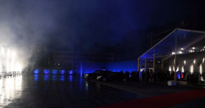 وفي ختام الحفل شاهد الجميع عرضا بالأوان على الواجهة مصحوبة بالألعاب النارية .