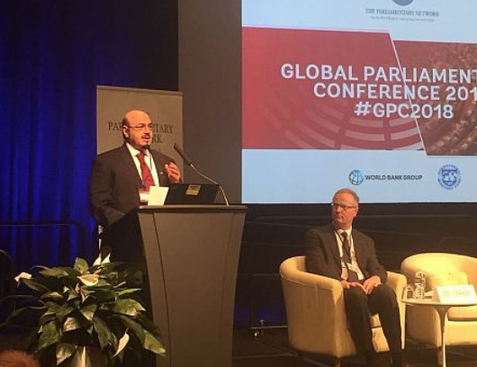 شارك وفد من مجلس الشورى برئاسة معالي نائب رئيس المجلس الدكتور محمد بن أمين الجفري في أعمال المؤتمر البرلماني الدولي الذي تنظمه الشبكة البرلمانية للبنك الدولي وصندوق النقد الدولي ويعقد في العاصمة الأمريكية واشنطن حاليا، وذلك بحضور رئيس الشبكة البرلمانية للبنك الدولي جيرمي ليفروي , ورئيس مجموعة البنك الدولي جيم يونق كيم ورئيسة صندوق النقد الدولي كرستين لاقارد، وبمشاركة ما يزيد عن 300 شخصية برلمانية وممثلين لأكثر من 65 دولة، وعدد من القياديين والمتخصصين في المجال الاقتصادي.