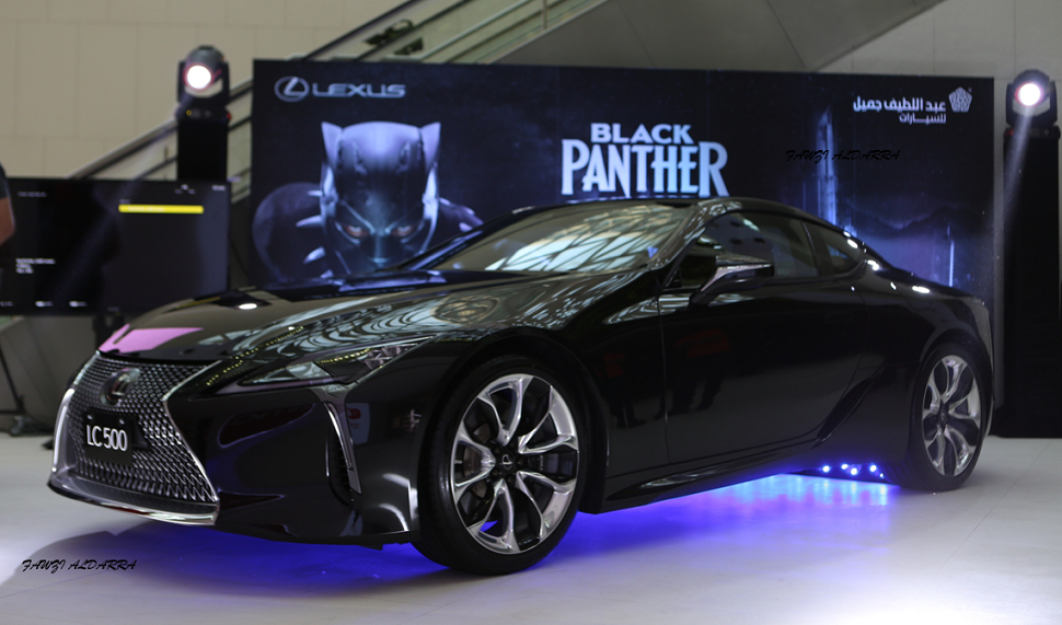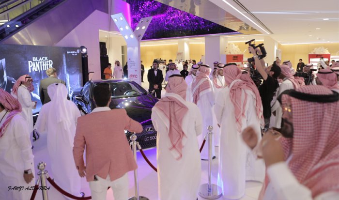 الصالة التي تم إفتتاحها في مركز الملك عبدالله المالي خصصت ليوم الإفتتاح الفيلم الأمريكي المشوق النمر الأسود "Black Panther"، والذي تظهر فيه سيارة لكزس LC500 كأحد أدوات الأبطال الخارقين لمحاربة الأعداء وقد ساعدها بذلك تصميمها الجريء ذو الأداء العالي وحركتها ومناوراتها الرشيقة التي تتناسب تمامًا للردود السريعة التي تشبه حركة بطل الفيلم "النمر الأسود" وإمكانياته الخارقة لتكون لكزس ثنائي مكمل لشخصية البطل الذي يدخل في صراع هائل للدفاع عن عرشه وليهزم خصومه ويطلق القوة الكامنة للنمر الأسود الذي لعب دوره الممثل تشادويك بوسمان، أما الإخراج فكان للمخرج ريان كوغلر،