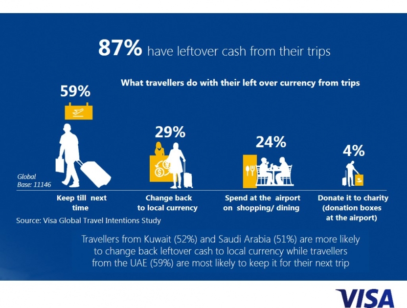 ووجدت "دراسة Visaلتوجهات السفر في العالم" التي تسلط الضوء على جوانب مختلفة من رحلات المسافرين، أن المسافرين من الإمارات والسعودية والكويت يعتمدون بشكل كبير على الادواتالإلكترونية في كل مرحلة من مراحل سفرهم، حيث حرص 97٪ و93٪ و85٪ منهم على التوالي على الاتصال بالإنترنت عند تواجدهم في الخارج. وكشفت الدراسة أيضاً عن جوانب معينة متعلقة بالسفر قد تؤدي إلى إصابة المسافرين بالقلق والتوتر، لاسيما الحصول على المبالغ النقدية وحملها وانفاقها.