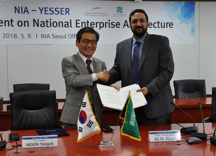وقع برنامج التعاملات الإلكترونية الحكومية "يسّر"، اليوم، اتفاقية تعاون مشترك مع وكالة المعلومات الوطنية "NIA" بكوريا الجنوبية، وذلك خلال زيارة قام بها وفد من البرنامج برئاسة المدير العام للبرنامج المهندس علي بن ناصر العسيري خلال الفترة ما بين 8 - 10 مايو 2018م.