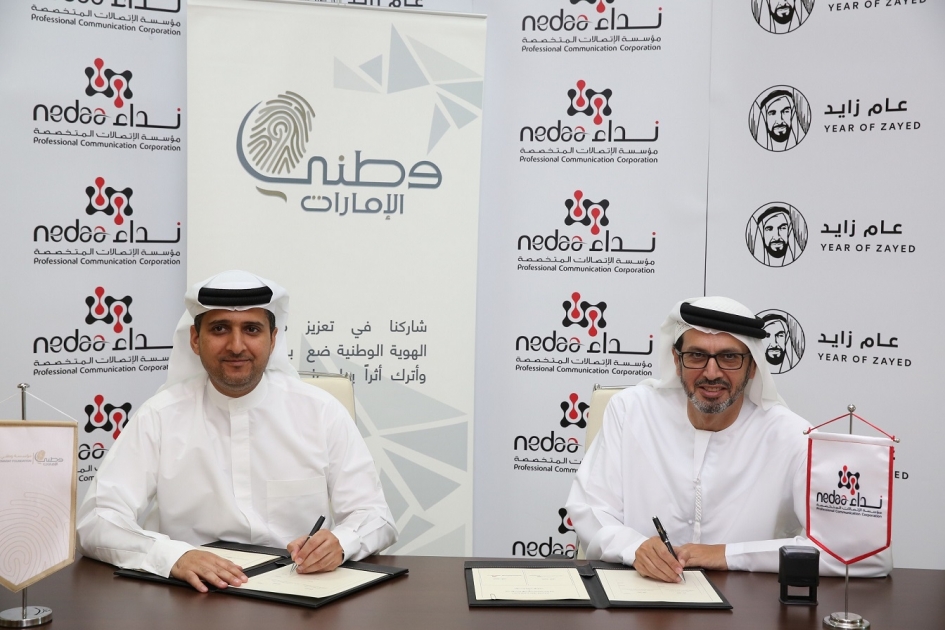 وقعت مؤسسة الاتصالات المتخصصة "نداء"، المزود الحصري لشبكات الاتصالات الآمنة والمعتمد لدى حكومة دبي،مذكرة تفاهم مع مؤسسة وطني الإمارات بهدف تطوير سبل التعاون في المجالات ذات الاهتمام المشترك، لا سيما فيما يتعلق بتعزيز الهوية الوطنية وخدمة المجتمع والانتماء الوطني. ووقع مذكرة التفاهم عن مؤسسة "نداء" سعادة منصور بوعصيبه، المدير التنفيذي للمؤسسة؛ وعن مؤسسة وطني الإمارات سعادة ضرار بالهول الفلاسي، المدير العام، بحضور عدد من المسؤولين لدى الجانبين.