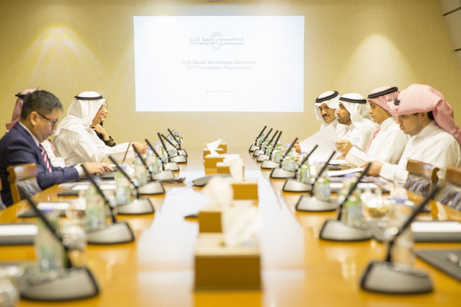 من جانبه قدم معاليأمين عام الأمانة السعودية لمجموعة العشرين عرضا عن جهود الأمانة واستعداداتها للمشاركة في اجتماعات مجموعة العشرين لهذا العام والعام القادم والذي يليه والتي ستستضيفها المملكة، مركزاً على أهمية لعب القطاع الخاص السعودي دورا رئيسيا في هذه الاجتماعات حتى يتمكن من قيادة قطاع الأعمال في العالم من خلال وضع أفضل السياسات والممارسات الجاذبة والمشجعة للدخول في شراكات دولية، لافتاً إلى ايمان القيادة الرشيدة ودعمها للقطاع الخاص باعتباره أحد الركائز المهمة في نمو ودعم الاقتصاد الوطني.